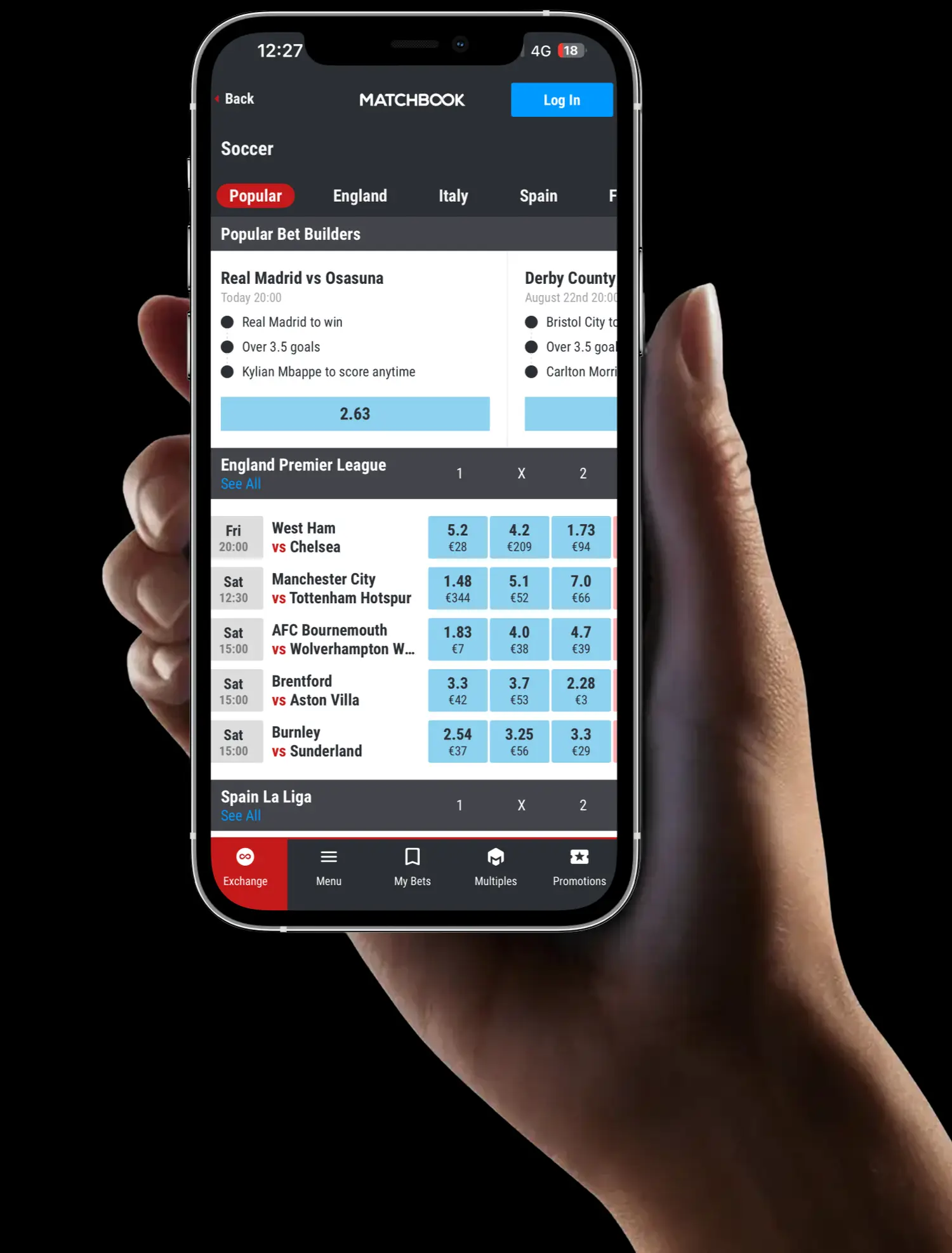 To qualify for free bets, the new user must place and settle £20 on Matchbook markets only. The user must place and settle two bets of £10. 1 x £10 bet must be placed and settled on an Exchange Market of odds of at least 2.0 or more. 1 x £10 bet must be placed and settled on a multiple or bet builder, consisting of at least 3 legs/selections and at odds of 3.0 or more.